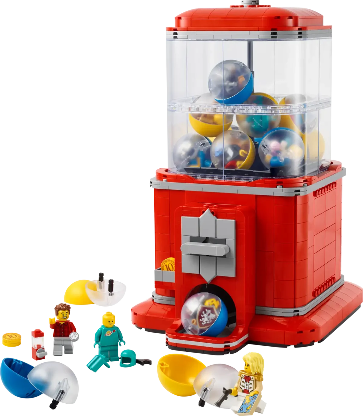 • Authentic vending mechanism – Insert a LEGO® coin element in the slot, turn the handle to release a capsule and find the elements to build a LEGO® minifigure in each capsule